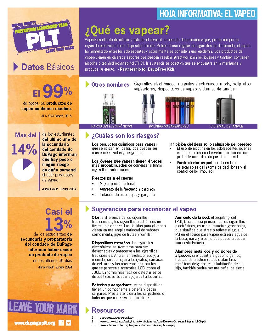 Hoja Informativa sobre el Vapeo para Padres